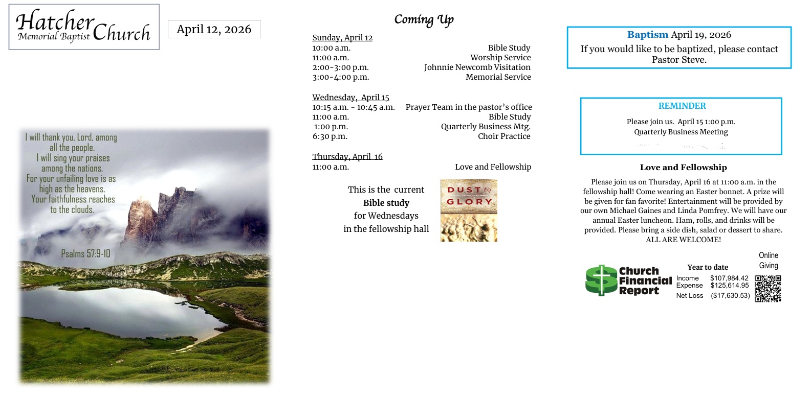 Our Worship Service is at 11:00 AM on Sunday morning in our Sanctuary